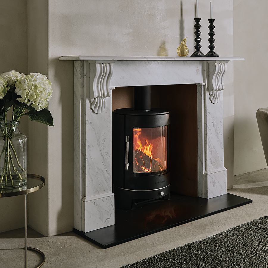 The Solstice 5WS sits on a low base that makes it suitable for use inside a fire chamber.